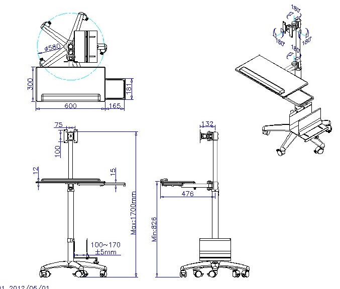עמדת מחשב ניידת עבור מחשב נייח מסך מקלדת ועכבר GoldTop Tech Arm GT130A-1 VESA 75-100
