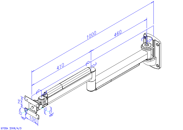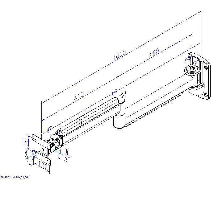 זרוע תעשייתית תלייה ארוכה למסך על קיר עם שלושה מפרקים כולל צידוד והטייה GoldTop Tech Arm GT9700A LCD Mount 1000mm Up To 32Inch