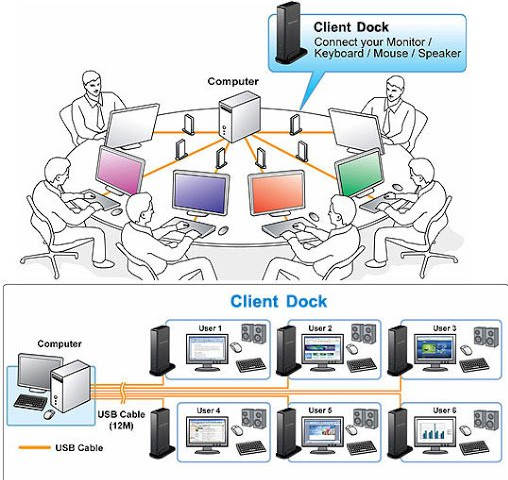 !!! תחנת עגינה מרחיב מתאם תצוגה לעבודה של עד 6 משתמשים מסך מקלדת עכבר ורמקולים למחשב אחד X-Power XP2600 Client Dock VGA+Audio USB2.0