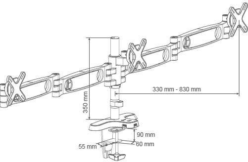 זרוע לשלושה מסכי LCD חיבור מהיר לשולחן