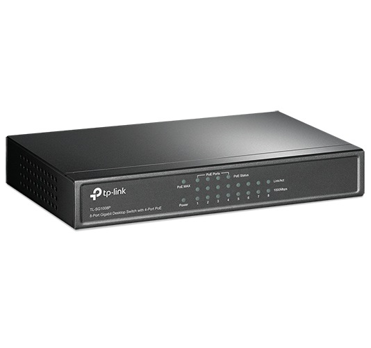רכזת מתג 8 ערוצים ג'יגה כולל מתח Poe לארבע ערוצים TP-LINK TL-SG1008P 8Port Gigabit Desktop Switch with 4-Port PoE