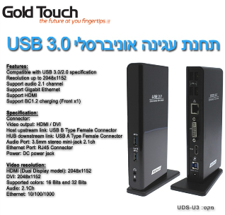 תחנת עגינה אונברסלית למחשבים ניידים GoldTocuh UDS-U3