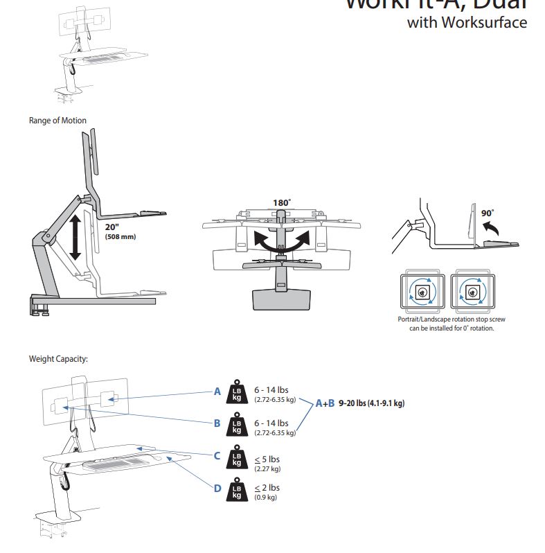 משקל LCD = 4.5–10 פאונד (2.0–4.5 ק"ג) כל אחד, משטח עבודה ≤ 5 פאונד (2.3 ק"ג),