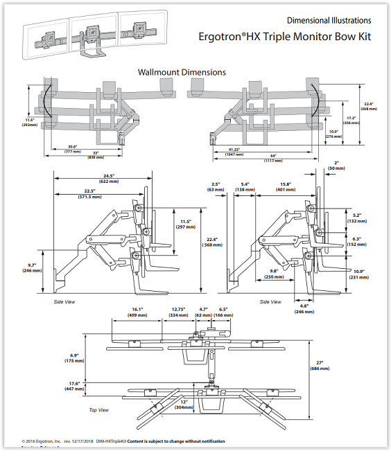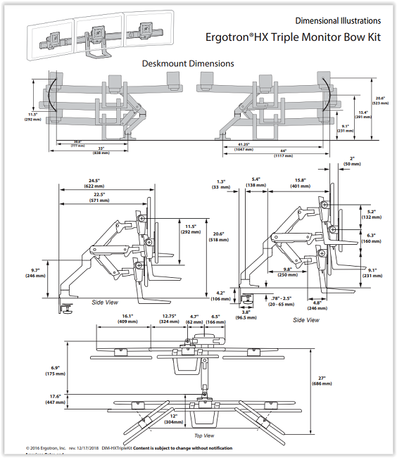 זרוע הידראולית נצמדת לשולחן לשלושה מסכים ארגוטרון Ergotron E-45-475-216+98-009-216 HX Desk Monitor Arm white