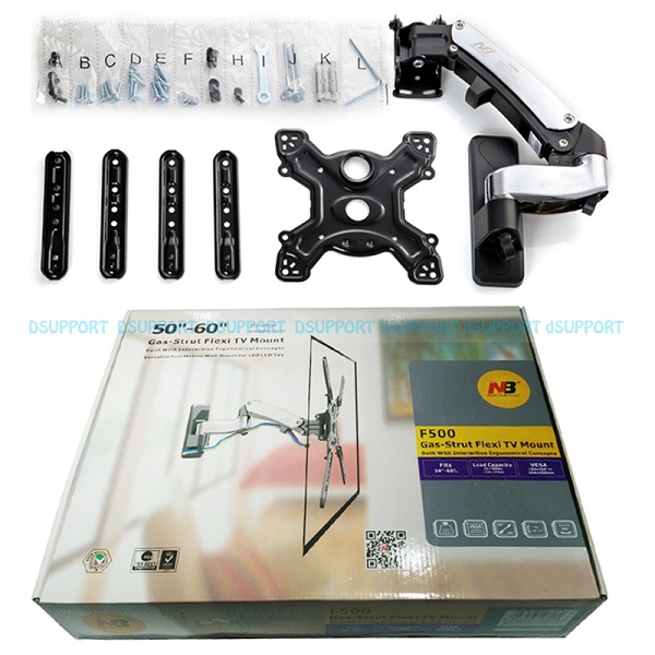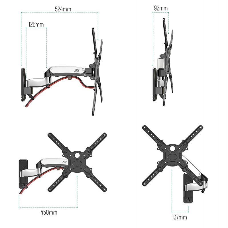 זרוע 3 מפרקים הידראולית גז כיוון גובה צידוד הטייה חיבור לקיר למסכים עד 60 תקן NB North Bayou F500 Gas-Strut TV Mount VESA