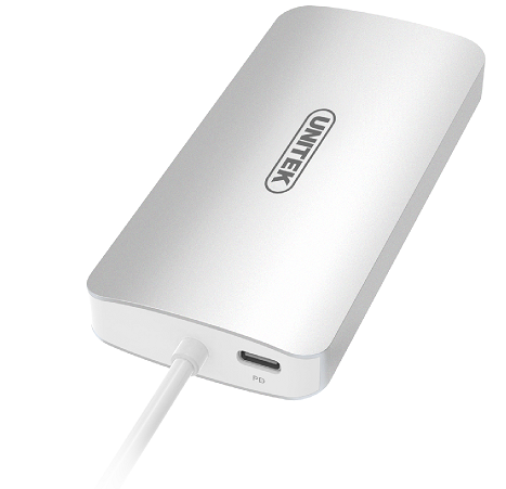 תחנת עגינה למחשב נייד משולב כרטיס מסך חיצוני ל-3 צגים מפצל מולטיפורט כולל טעינה יוניטק Unitek Y-9116 Type-C to 2xHDMI VGA USB3 Converter Aluminium Support 3 Display Multi-Port Hub with Power Delivery