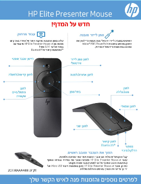 HP Elite Presenter Mouse, micro USB to USB rechargeable cable, carrying pouch and documentation