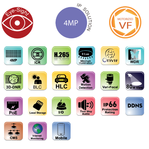 מצלמת אבטחה ממונעת פרוויז'ן IP רשת יום ולילה אינפרא Provision CMOS I8-340IP5MVF (2688x1520) 4MegaPixel 9-22mm 4Led Array 80M PoE Real Time True WDR IP Camera