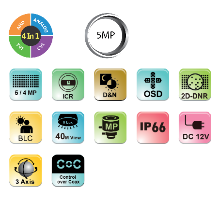 5MP AHD/TVI; 4MP AHD/TVI/CVI;CVBS Camera• Sensor: 1/2.7”