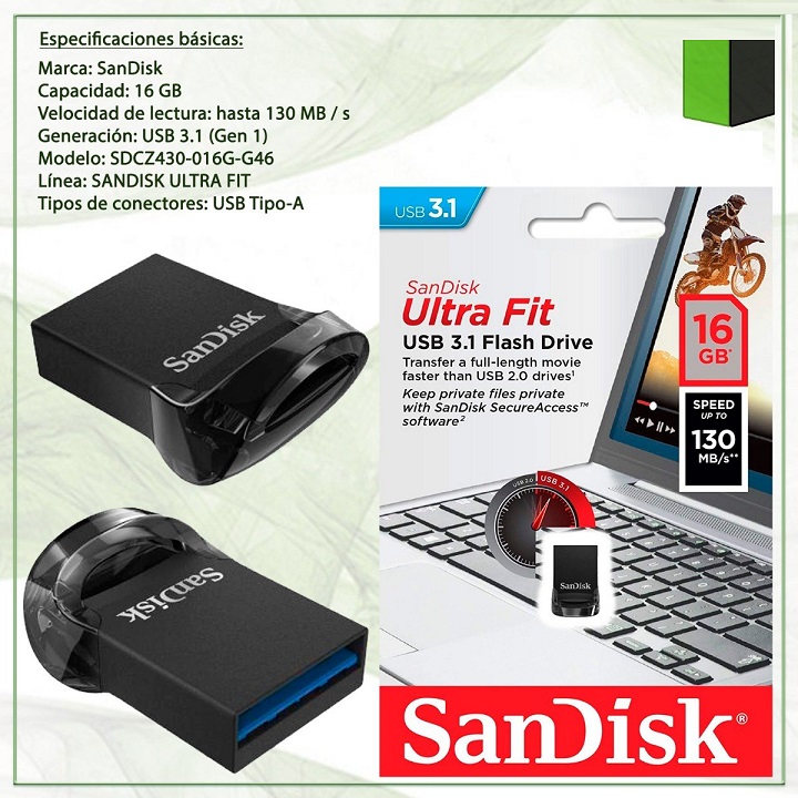זיכרון נייד קטן ואיכותי מבית SanDisk בעל חיבור USB 3.1 המאפשר העברת קבצים במהירות גבוהה, בנפח של 16GB