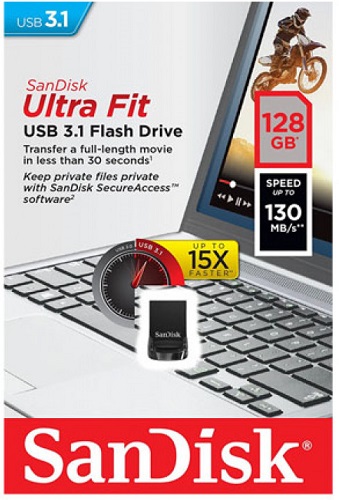 זכרון נייד סאנדיסק פלאש SanDisk Ultra Fit™ USB 3.1 128GB - Small Form Factor Plug & Stay Hi-Speed USB Drive