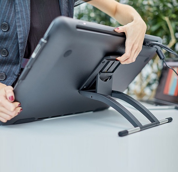 מעמד תצוגת עט של Wacom מאפשר לך להגדיר את זווית העבודה הרצויה ומתאים למצב נוף.