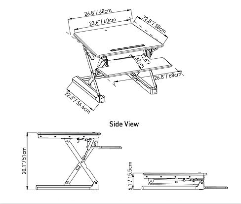 גודל: משטח מרכזי – 58X68 ס"מ . משטח המקלדת – 68X32 ס"מ.