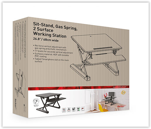 עמדת עבודה שולחנית מתכוונת ישיבה עמידה ברקן לנשיאת מסך אחד,מקלדת ועכבר שחור Barkan BI68WS Sit-Stand WorkFit-TL Desktop Workstation