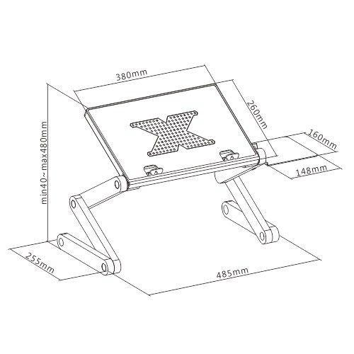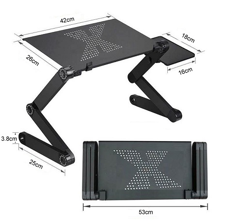 שולחן סטנד ארגונומי למחשב נייד עם משטח עבודה נשלף לעכבר Lumi LPD03-18 Height Adjustable Ventilated Laptop Desk with Mouse Pad Side Mount