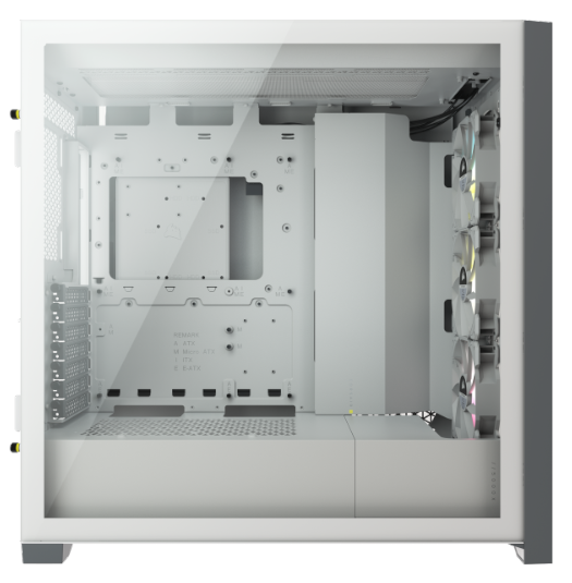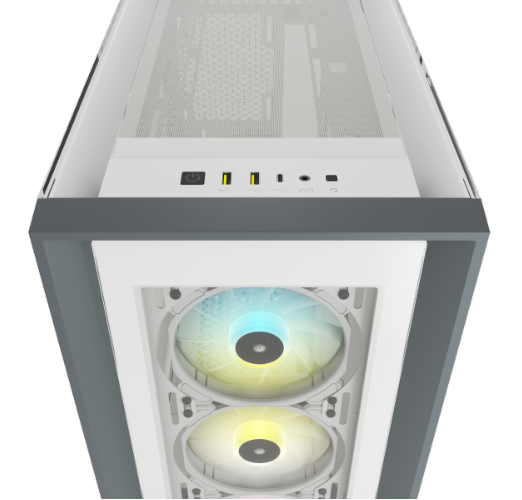CORSAIR iCUE 5000X RGB הוא מארז ATX באמצע המגדל המציג את המחשב האישי שלך ולא את הכבלים שלו. ארבעה לוחות זכוכית מחוסמים מדהימים ושלושה מאווררי CORSAIR SP RGB ELITE כללו את המחשב שלך לתצוגה.