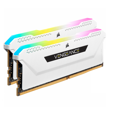 קיט זכרונות למחשב נייח 32GB כולל צלעות קרור מאלומיניום ותאורת לד Corsair Vengeance RGB Pro SL CMH32GX4M2E3200C16W Kit 32GB (2x16) 3200MHz DDR4 CL16 White Intel XMP