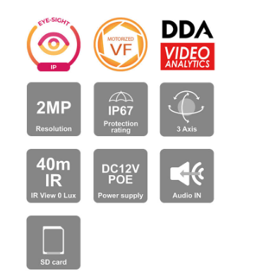 מצלמת אבטחה צינור עדשה משתנה חשמלית פרוויז'ן IP רשת אנליטיקה בסיסית זיהוי פנים זיהוי עצמים ספירת אנשים יום ולילה אינפרא Provision CMOS I4-320IPE-MVF (1920x1080P) 2MegaPixel 2.8-12mm (32°-103°) 40M PoE VARI-FOCA Lens Bullet IP Camera