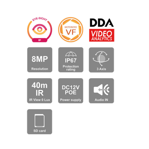 40 מ' IR 8MP DDA Analytics עדשה ממונעת מצלמת כיפה/צריח עם הגנה מובנית