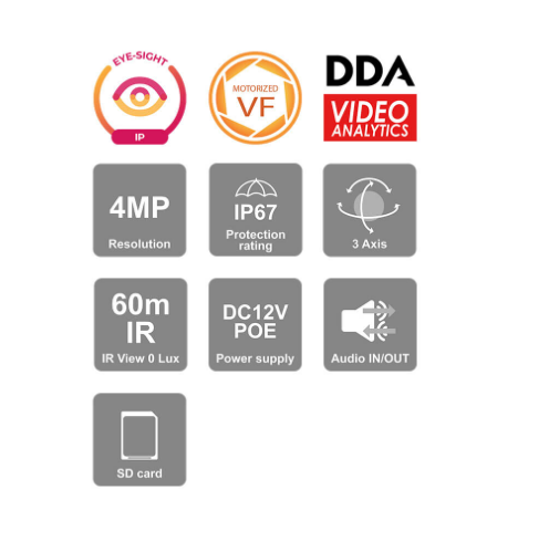 8MP MVF Lens Bullet Camera עם IR LED ו-DDA2 Analytics