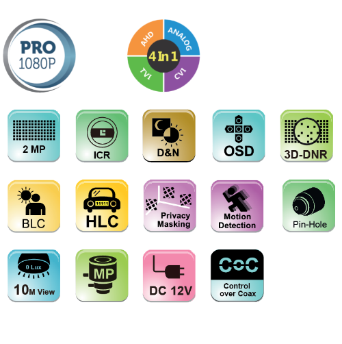 Selectable output-1080P 4in1 (AHD / CVI / TVI / CVBS + PAL/NTSC)