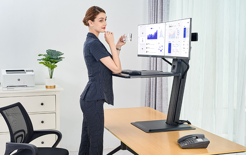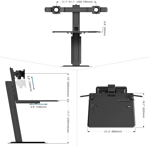 מעמד שולחני ישיבה עמידה הידראולי לשני מסכים מקלדת ועכבר תאימות לגודל מסך עד 22-27'' עד משקל 2-9 ק''ג צבע שחור NB North Bayou S100 Double Monitor Mount Sit-Stand Workstations Fits screen size from 22” to 27” with capacity 2-9 kg