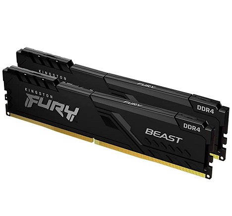 זכרון למחשב נייח קינגסטון כולל צלעות קרור מאלומיניום Kingston KF436C18BBK2/32 Kit 16GBx2 32GB 3600MHz DDR4 CL18 FURY Beast Black CL18