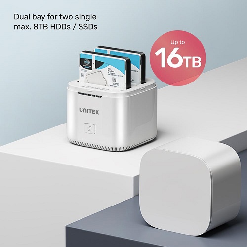 תחנת עגינה ומשכפלת ל 2 דיסקים קשיחים חיצוניים יוניטק Unitek S1105A SyncStation Marshmallow 2.5” USB3.0 to SATA6G 2.5" Docking Station with UASP Function