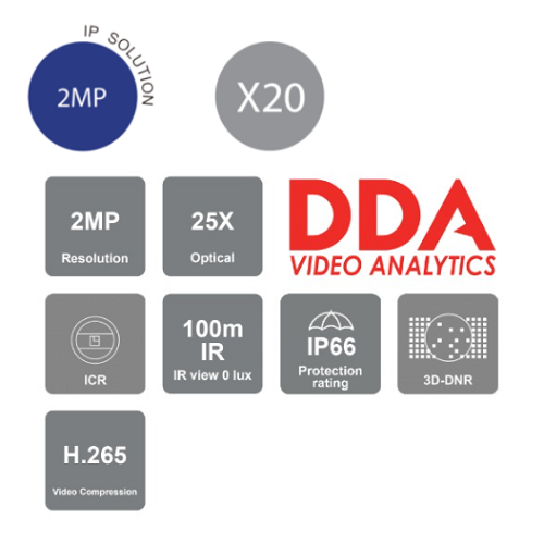 מצלמת כיפה IP ממונעת PTZ חיצונית זום כפול 25 פרוויז'ן Provision Z4-25IPE-2 (IR) 1920x1080 2Mega Pixel Optical Zoom X25 12DC PoE+ 4.8-120mm 100m DWDR