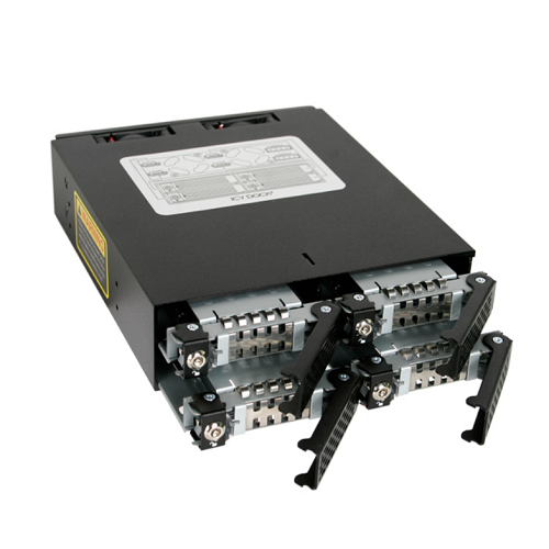 ה-ICY DOCK ToughArmor MB994SK-1B לוקח 4 x 2.5 אינץ' SAS/SATA HDD/SSD מגובה 5 מ"מ עד 15 מ"מ, ותומך בהחלפת כוננים מהירים וקלים.