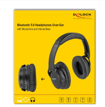 אוזניות בלוטות' אלחוטיות מתקפלות עם מיקרופון ובס אינטנסיבי דילוק Delock Bluetooth 5.0 Headset D27181