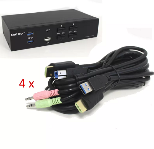 קופסת מיתוג 4 ערוצים גולד טאץ' Gold Touch KVM-HDMI-4-4K60HZ 4Ports HDMI KVM Switch with Cables 4K@60HZUSB3.0