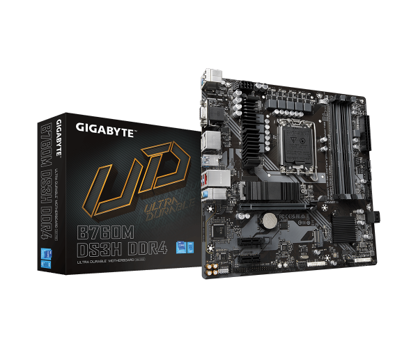 לוח אם ג'יגהבייט למעבדי אינטל דור 12 ו 13 Gigabyte B760M DS3H DDR4 Micro-ATX Intel B760 Express Chipset Socket LGA 1700 DDR4 Display Port HDMI VGA