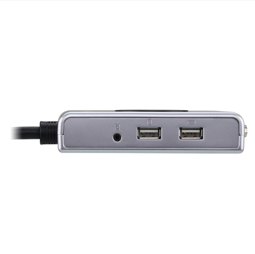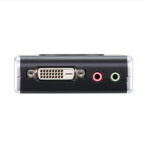 ממתג 2 פורטים יצוק (Cable KVM) המאפשר מיתוג של 2 מחשבים בעלי מסך DVI, מקלדת עכבר USB וכולל רמקולים ומקרופון.