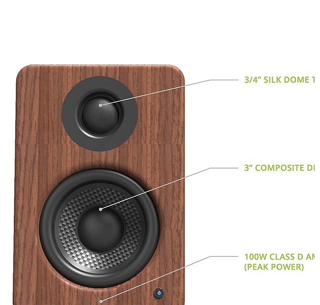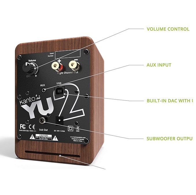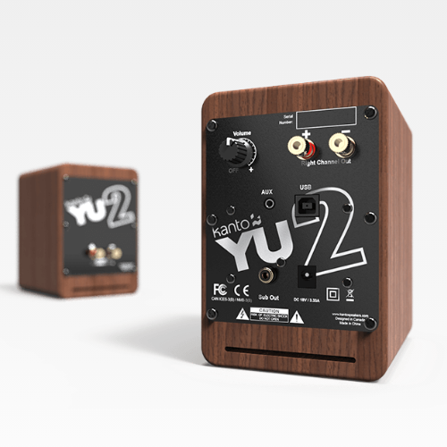 רמקולים עוצמתיים למחשב קאנטו בצבע עץ אגוז Kanto YU2 Powered Desktop Speakers 100Watts 3.5mm Walnut YU2WAL