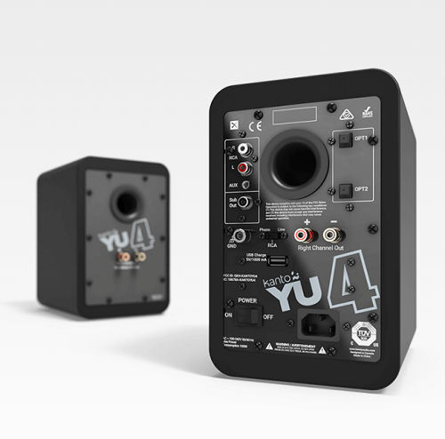 רמקולים אלחוטיים עוצמתיים למחשב קאנטו בצבע שחור מט Kanto YU4 Powered Speakers with Bluetooth and Phono Preamp 140Watts Bluetooth Matte Black