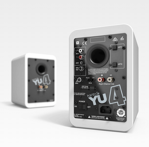 רמקולים אלחוטיים עוצמתיים למחשב קאנטו בצבע לבן מט Kanto YU4 Powered Speakers with Bluetooth and Phono Preamp 140Watts Bluetooth Matte White