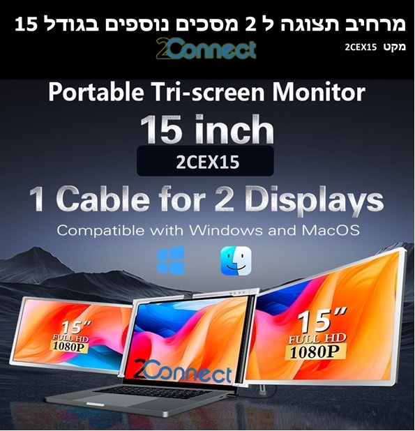 מרחיב תצוגה ל 2 מסכים נוספים בגודל 15