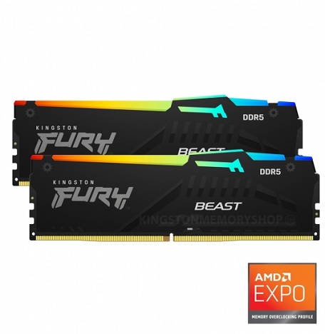 קיט זכרון למחשב נייח די.די.אר 5 כולל צלעות קרור מאלומיניום קינגסטון Kingston KF552C36BBEAK2-32 FURY Beast RGB 32GB 5200MHz DDR5 CL36 (16GBx2 Kit) For AMD