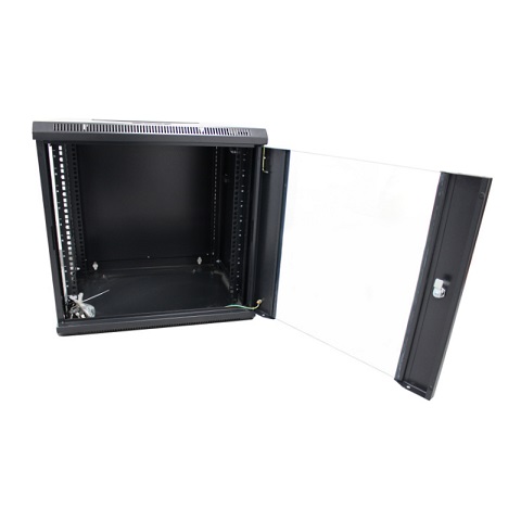 ארון תקשורת תליה לקיר כולל דלת זכוכית עם מנעול לוגר Lugger HI-10U-500-B 10U depth 550x500 Black