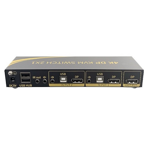 קופסת מיתוג KVM מ-2 מחשבים לעמדת עבודה אחת DISPLAYPORT 4K@60HZ+ USB + AUDIO, כולל כבלים, ספק כוח, שלט רחוק וחיבור RS232 טופ איקס Top-X KVMDP50-2