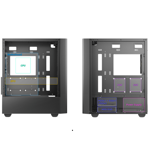 מארז אנטק לגיימרים ללא ספק Antec NX500M ARGB Mini Tower GAMING CASE NO FANS usb Type-C Black 0-761345-81056-2