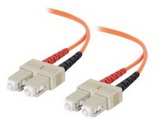 כבל אופטי MULTIMODE OM1 DUPLEX עם מחברי UPC קרמיים מסוג SC בקצוות.
