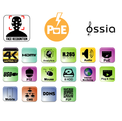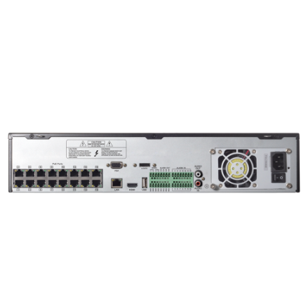 המכשיר כולל 16 כניסות אזעקה + 4 יציאות אזעקה ותומך בזיהוי פנים ו-Advanced Video Analitycs (DDA).