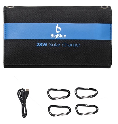 מצויד בשלוש יציאות USB (סוג A) משודרגות. כל פלט מקסימלי הוא 5V/2.4A והזרם המרבי הכולל הוא 5V/4.8A. מטען סולארי BigBlue SolarPowa 28 (ללא מד זרם) מאפשר לך לרתום את אנרגיית השמש לטעינת מספר מכשירים
