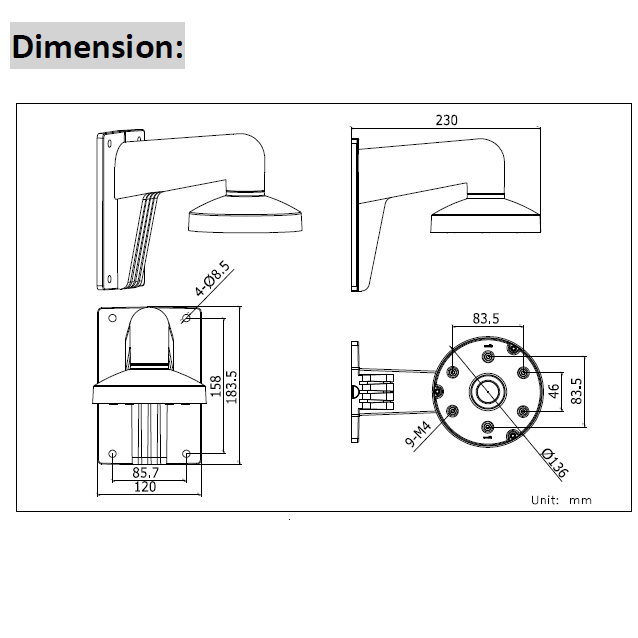 זרוע לקיר היקוויז'ן Hikvision DS-1273ZJ-135 Wall Mount For Dome Cameras