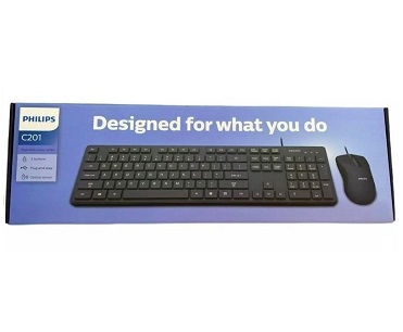 סט מקלדת ועכבר חוטיים עברית-אנגלית מקשים נמוכים פיליפס Philips HTC6201B C201 Wired Keyboard and Ergonomic Mouse Hebrew-English