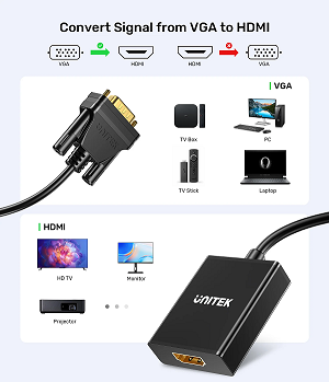 מתאם UNITEK VGA ל-HDMI מגיע עם כבל שמע, כך שמשתמשים יכולים להתחבר בקלות