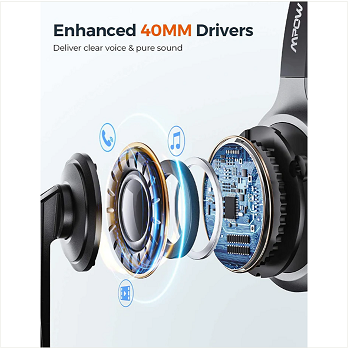 אוזניות Mpow M5 Pro Bluetooth, מיקרופון מתקדם לביטול רעשים, אות BT חזק, אוזניות לנהג משאית