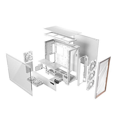 מארז מחשב לבן מגדל מלא חלון צד שקוף ללא ספק-כוח אנטק Antec 0-761345-10156-1 Flux Pro White EATX Full Tower Included 6 FAN Tempered Glass